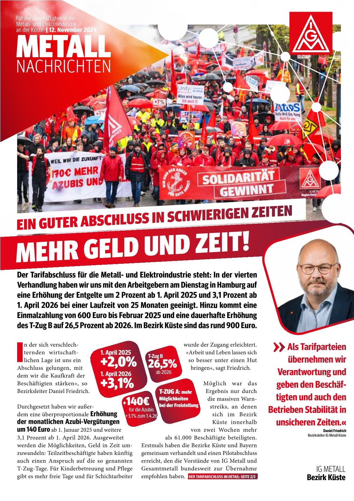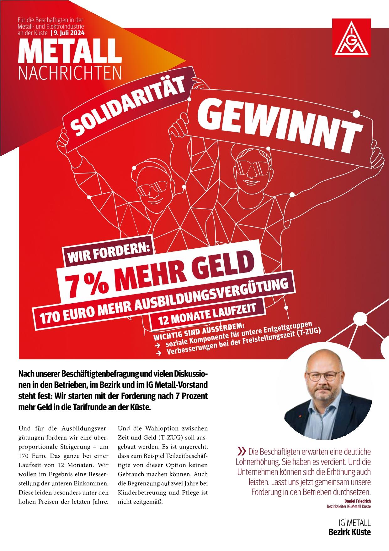 Hier findest du unsere Flugblätter, die in unserem Bezirk ausgeteilt wurden. Hier hast du einen schnellen Überblick, was in der Metall und Elektro-Tarifbewegung 2024 wichtiges passiert ist.